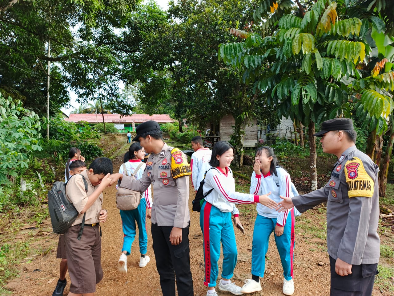 Anak-anak sekolah menyambut dengan antusias kehadiran personel Polsek Lamandau. Kegiatan berlangsung dengan penuh keakraban dan suasana yang aman serta kondusif.