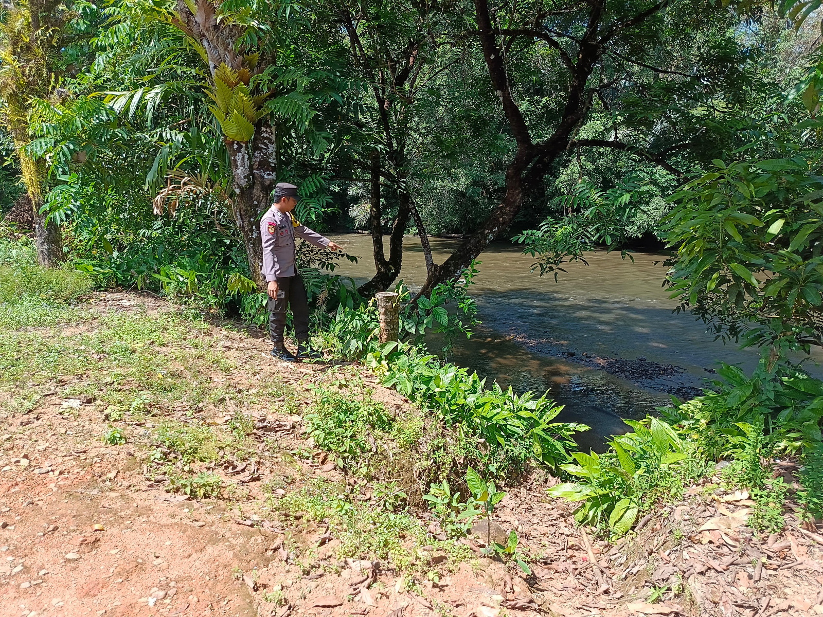 Lamandau – Polsek Delang, Piket Polsek Delang melakukan kegiatan rutin pengecekan debit air DAS Delang di TMA Kelurahan Kudangan RT.02 Kecamatan Delang, Kamis (26/3/26) Pagi