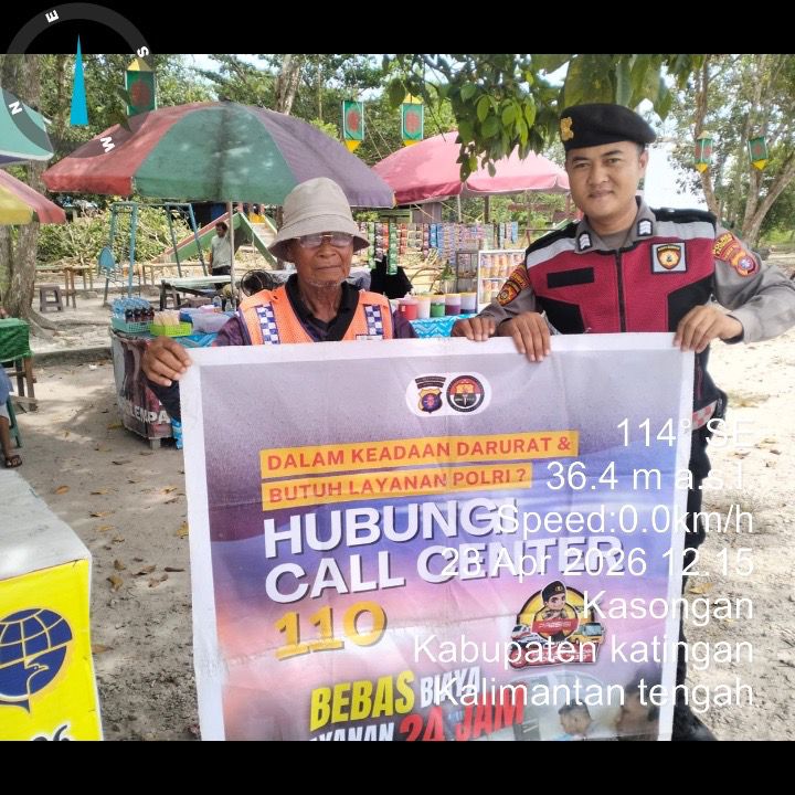 Samapta Polres Katingan melaksanakan kegiatan sosialisasi layanan Call Center 110 Polri kepada masyarakat Desa Hampalit, Kecamatan Katingan Hilir, Kabupaten Katingan, kamis (23/4/2026). Siang.